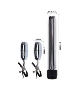 Este es el set que estabas esperando. Con una bala vibradora y unas pinzas que también tienen una función de vibración aumentaras el placer a niveles inimaginables. Las pinzas están forradas para que no hagan daño mientras disfrutas de unas vibraciones de lo más agradables. No te olvides de utilizar lubricante con la bala vibradora.