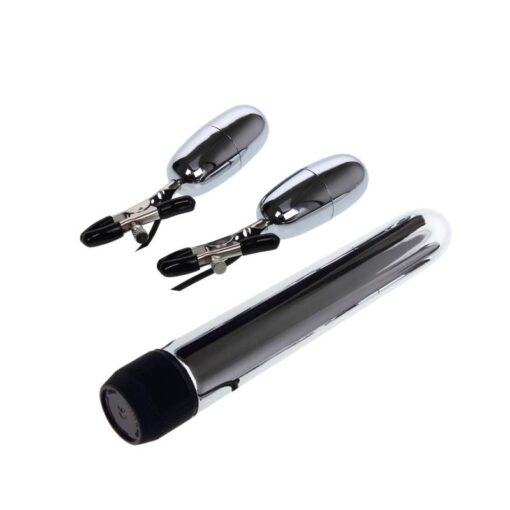 Este es el set que estabas esperando. Con una bala vibradora y unas pinzas que también tienen una función de vibración aumentaras el placer a niveles inimaginables. Las pinzas están forradas para que no hagan daño mientras disfrutas de unas vibraciones de lo más agradables. No te olvides de utilizar lubricante con la bala vibradora.