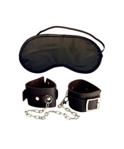Dale a tu dormitorio un toque fetichista con estas esposas para principiante. Se compone de un kit de esposas en cuero ajustables unidas por una cadena de metal. Son perfectas para las muñecas o tobillos.